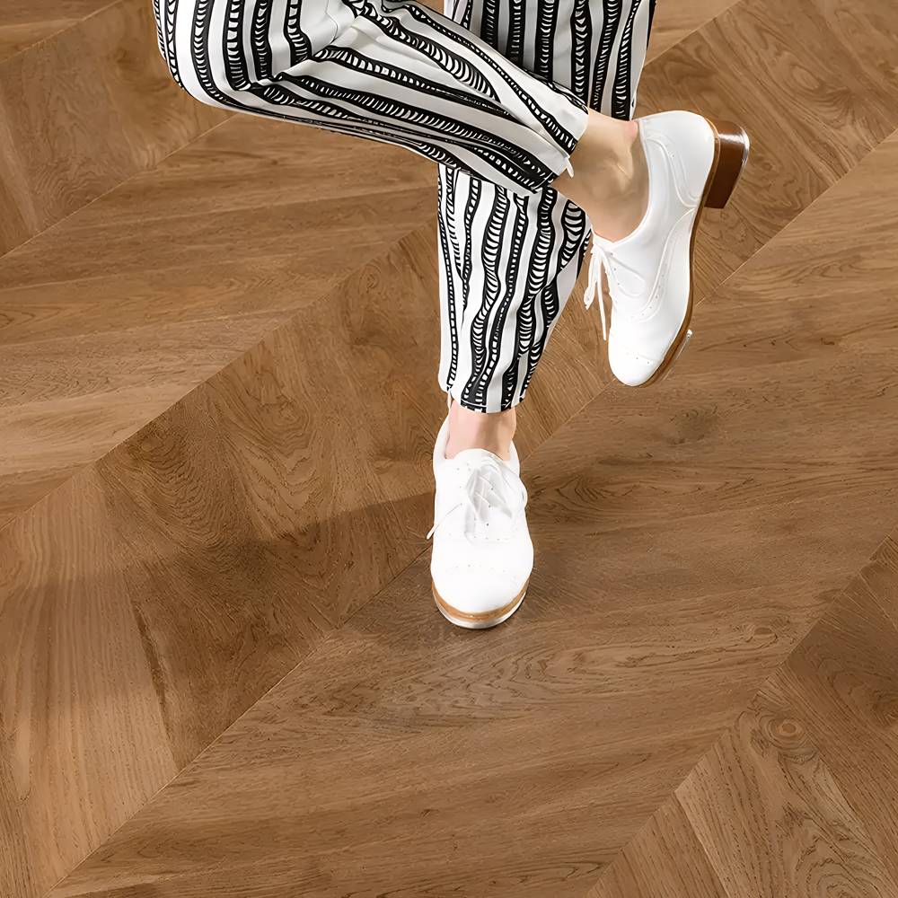 Главное отличие французской елки от классической английской — планки со срезанными под углом 45° торцами, которые создают идеальный V-образный узор без зазоров . Каждая планка имеет микрофаску по периметру, подчеркивающую геометрию рисунка и добавляющую полу объем и глубину. В упаковке содержится равное количество левых и правых планок, что гарантирует безупречную стыковку узора .