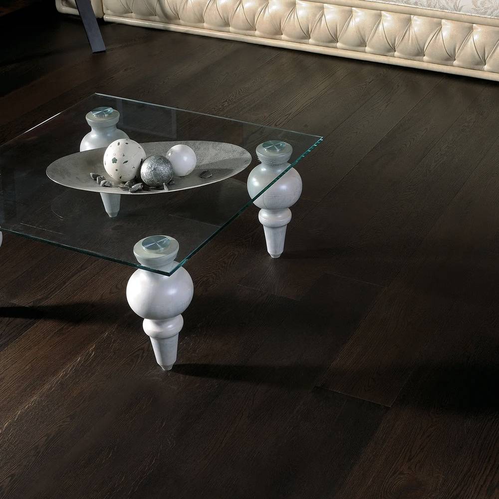 Паркет представлен в сорте Черектер (Character), отличающемся выразительной текстурой с крупными сучками, трещинами и червоточинами, которые придают полу эффект состаренного дуба с исторической глубиной и характером .