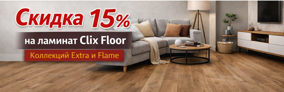 Горячее предложение в Deko Home! Ламинат Clix Floor коллекций Extra и Flame со скидкой 15%. Вы получаете европейское качество, износостойкость 33 класса и стильный дизайн по лучшей цене. Пол, который прослужит годы и не боится нагрузок. Идеальный вариант для квартир и домов. Закажите с доставкой по Москве и области прямо сейчас!